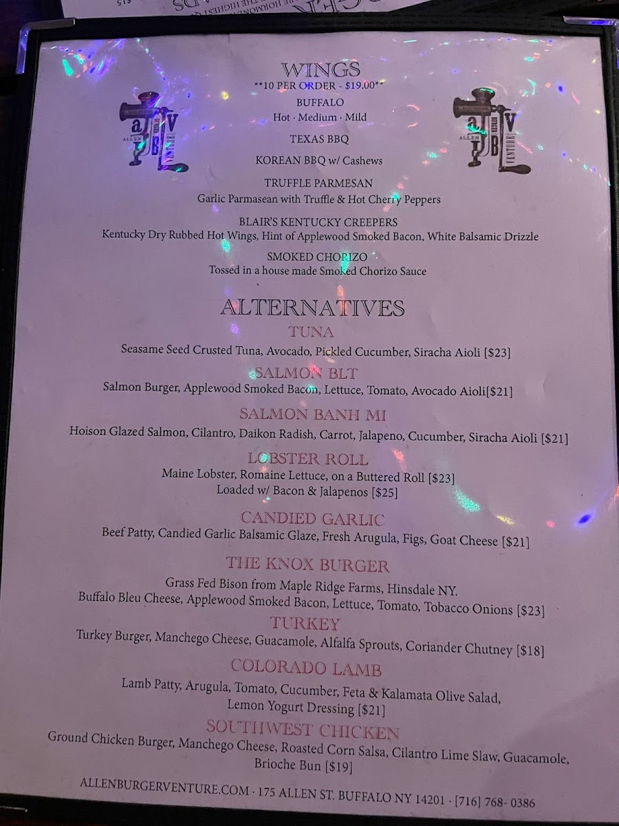 Welcome to Allen Burger Venture, where the art of the burger is taken to new heights! Located at 175 Allen St, Buffalo, this eatery has quickly become a local favorite. The menu features mouth-watering smash burgers that are crafted to perfection. Try the SINGLE SMASH BURGER with American cheese and pickles for just $15, or indulge in the double for a bigger bite at $19.